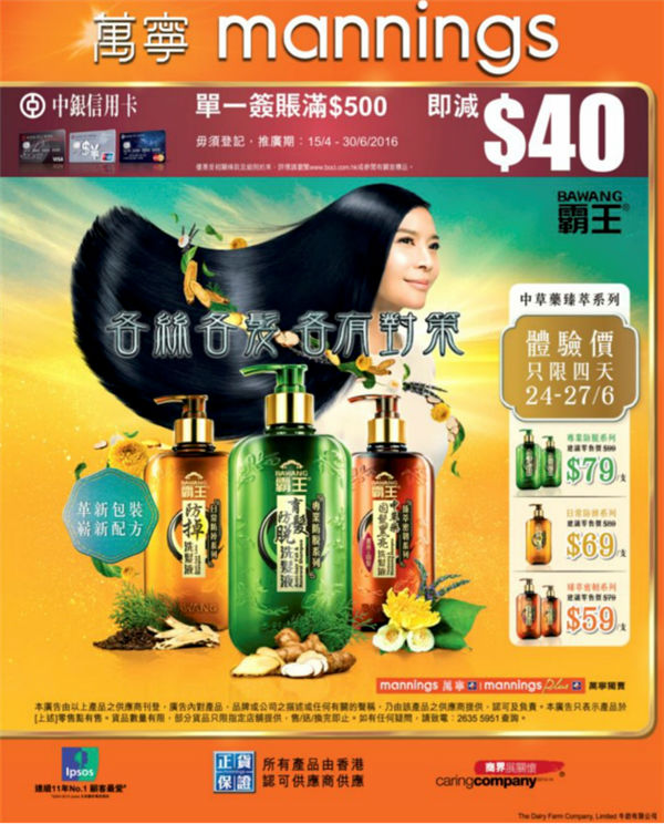 香港打折:万宁/屈臣氏最新店内购物优惠(至16年6月27日)