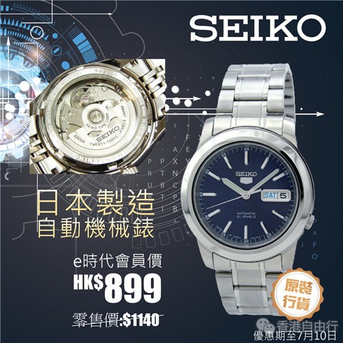 日本SEIKO(精工)限时优惠$899/只 日本制造自动机械表芯