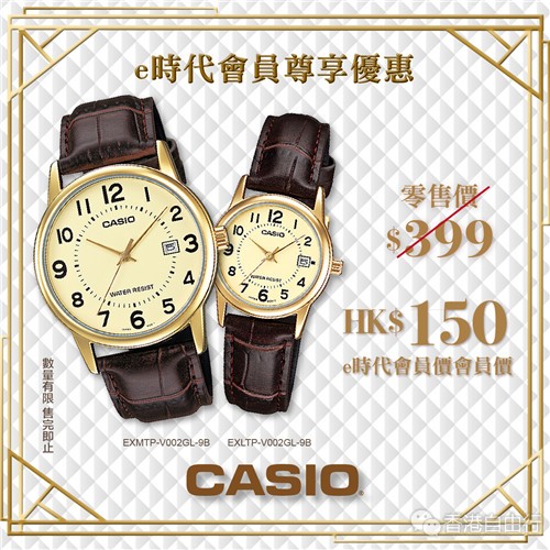 CASIO卡西欧时尚手表超优惠价低至$150/只(原价:$399)