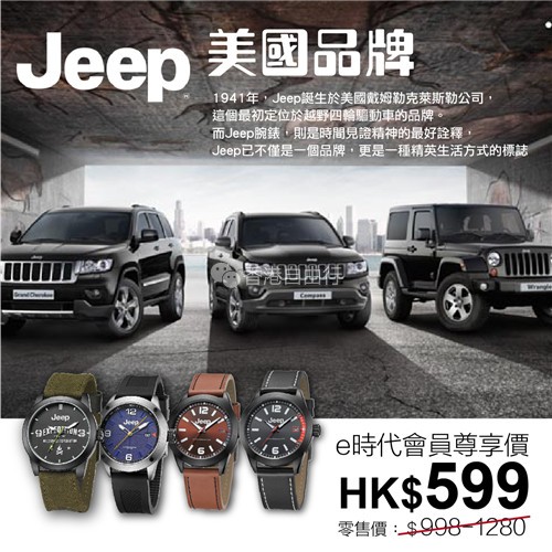 美国品牌JEEP 手表强势登场 香港e时代会员尊享优惠$599/只