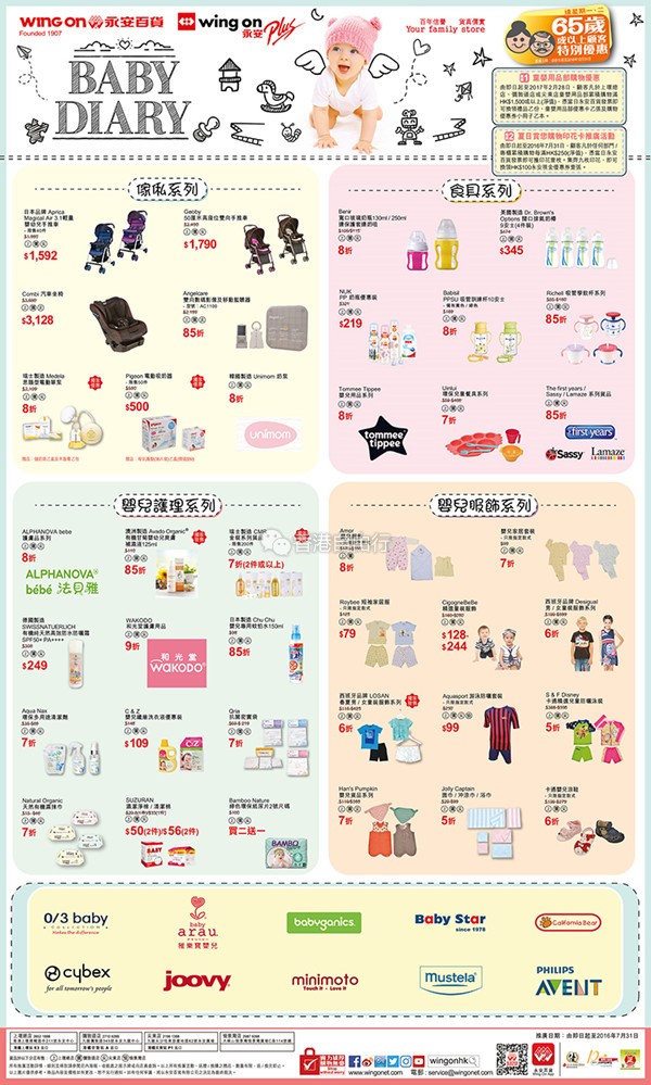 香港打折:永安百货2016 Baby Promotion婴儿用品大优惠(至7月31日)