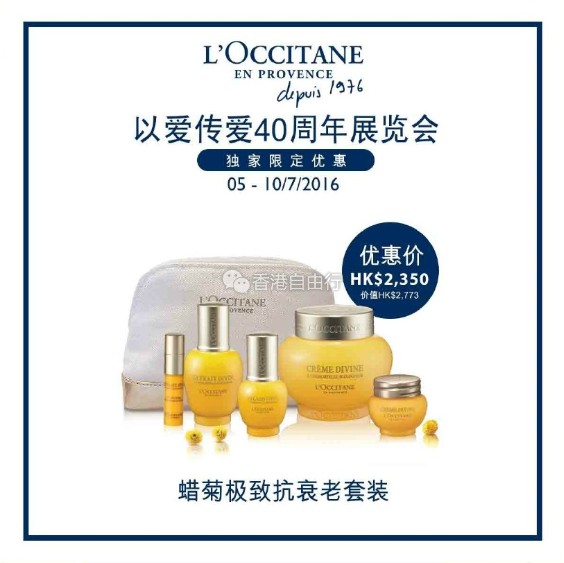 香港打折:丹粉们注意噜!欧舒丹L’OCCITANE40周年展览会独家限定优惠来啦(至16年7月10日)