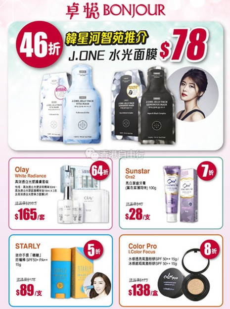 香港打折:卓悦门市大优惠 J.ONE面膜46折,OLAY套装64折(至7月11日)
