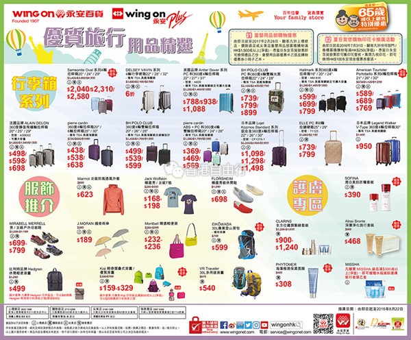 香港打折:永安百货优质旅行用品精选优惠(至16年8月22日)