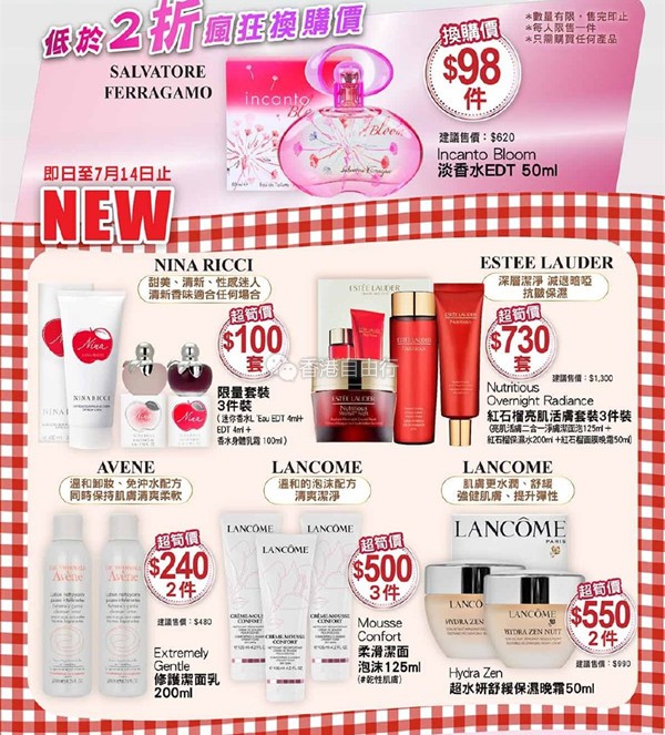 香港打折:低至2折疯狂换购!雅施最新店内化妆品购物优惠(7月8至7月14日)