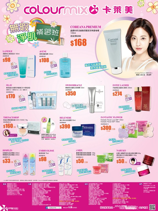 香港打折:兰芝清洁泡沫51折!Colourmix 卡莱美最新店内购物优惠(至16年7月21日)