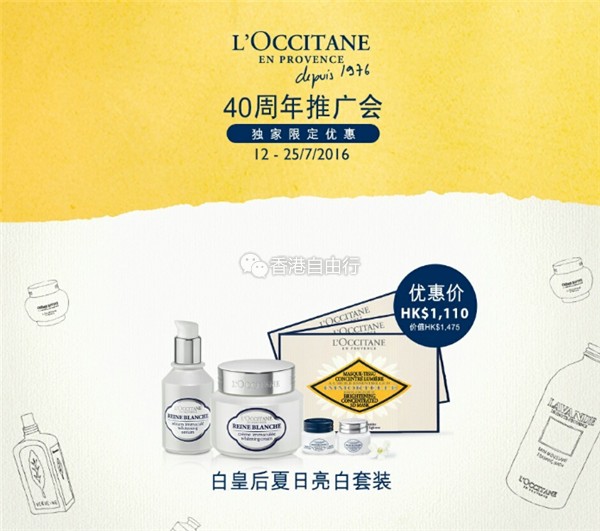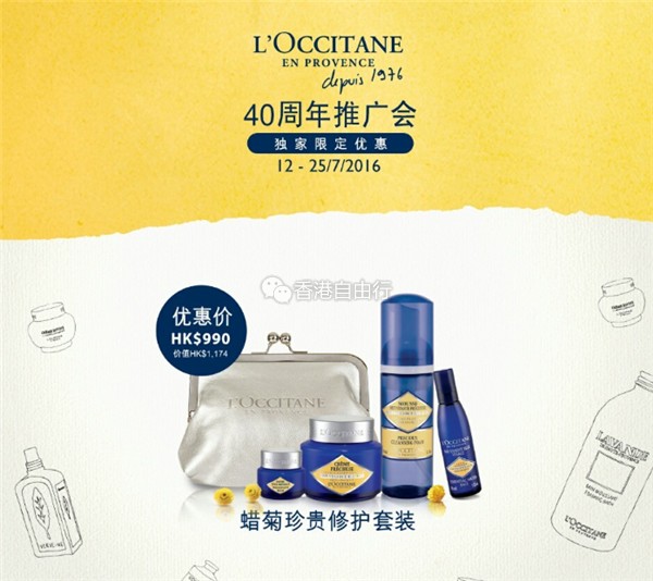 香港打折:可别miss了!欧舒丹L’OCCITANE 40周年推广会独家限定套装优惠(即日起至7月25日)