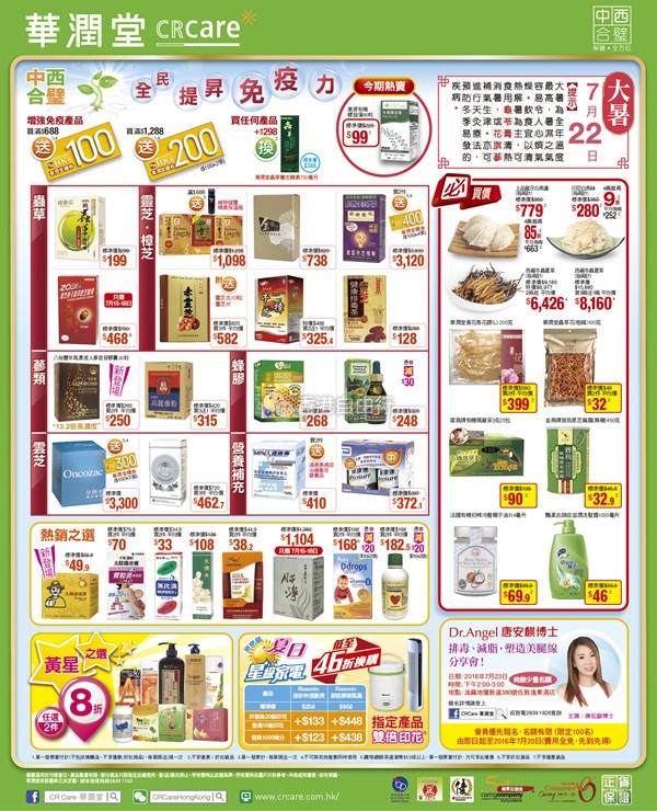 香港打折:无比滴低至$33!华润堂本周最新优惠海报(16年7月15至21日)