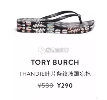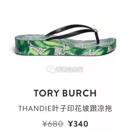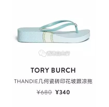 夏天怎么少得了一双拖鞋?周末外出,第一步就是要有一双时尚但舒服的拖鞋。去沙滩去泳池,装备里也该有一双好搭配泳装而且不刮脚的拖鞋。Tory Burch的坡跟凉拖基本都是五折优惠,花色鲜艳时尚而且款式很多,200多元港币就能带走一双!