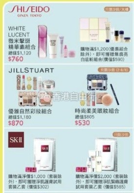 夏季香港优惠多到挡都挡不住,一田百货今日起有SUMMER BEAUTY优惠,资生堂、倩碧、兰芝、SK-II、HABA、KOSE等超多化妆品套装都有惊喜优惠!带好钱包去疯狂采购吧!