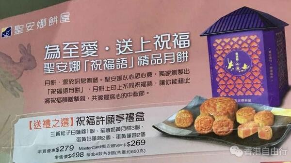 其实还是挺喜欢圣安娜的西饼,每次去都会去买蛋挞和蛋卷回来吃,今年的月饼也很早就有优惠了,发给大家看看。