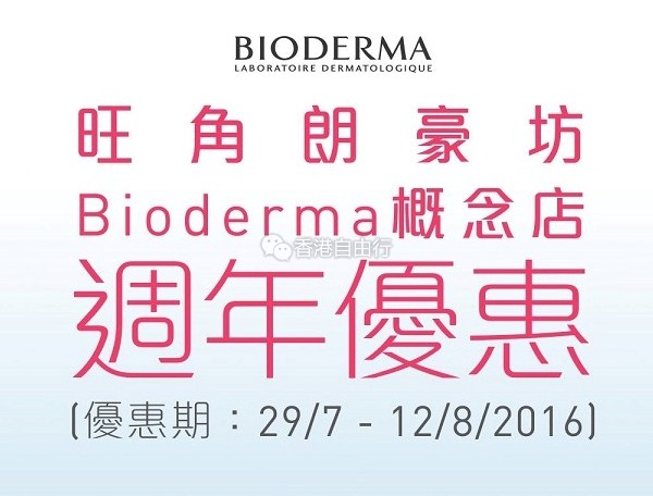香港打折:贝德玛BIODERMA 朗豪坊店周年优惠(至16年8月12日)