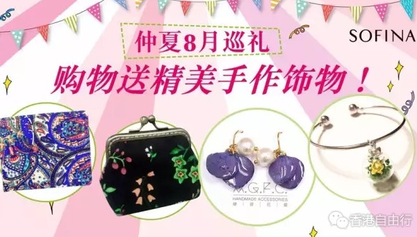 手作于香港大热,全因女生都喜欢那份独一无二的心意及手工!8月内,于特定✿手作市场巡礼✿日期及时间到指定SOFINA店并购物满指定金额,即额外送您手作店Handmadeship、Rose Diy、硬胶花痴(AGFC)及Blooming Buds Handmade的精美手作饰物精品,大家更可即场自由挑选心水手作品,感受手作达人的满满心意!立即记下手作市场巡礼日期、时间及地址,临店选购吧!