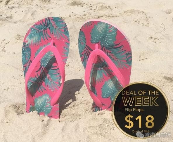 6IXTY 8IGHT主打休闲,卡通,可爱风格,满满哒少女心,感觉就是给姑娘们设计的牌子,价格也不贵,不定时有活动。炎炎夏日,泳衣、太阳眼镜、防晒乳液都准备好… 千万别忘掉可爱的人字拖啊! 6IXTY 8IGHT沙滩拖鞋低至HK$18/双(原价$48/双),剁手时机又来喽!