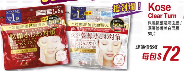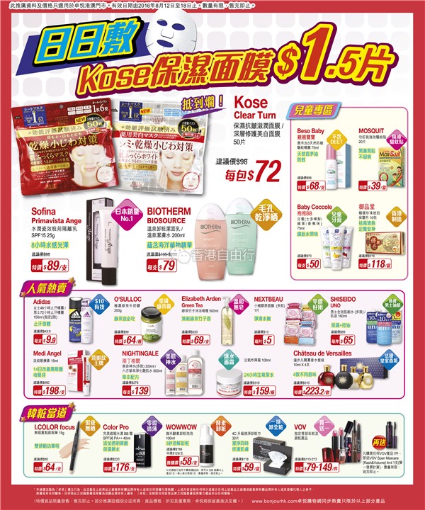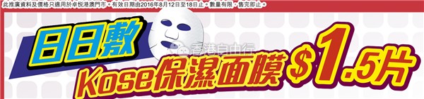 香港打折:KOSE保湿面膜$1.5片!卓悦本周门市最新优惠(8月12至18日)