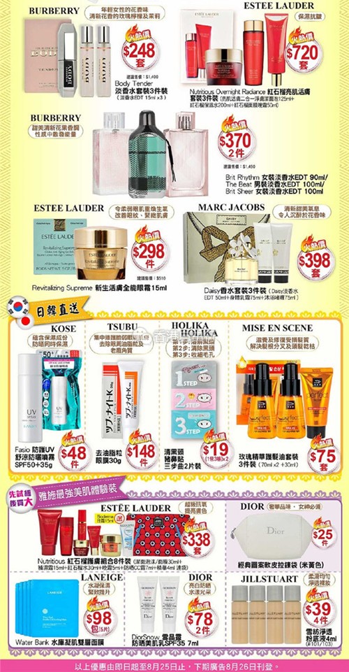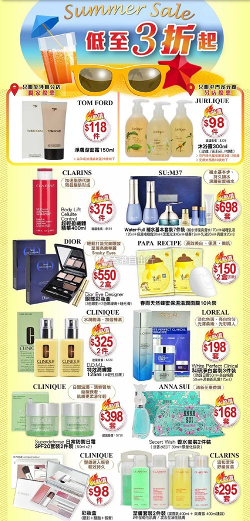 香港打折:Summer Sale低至3折起 雅施最新店内化妆品优惠(8月12至25日)