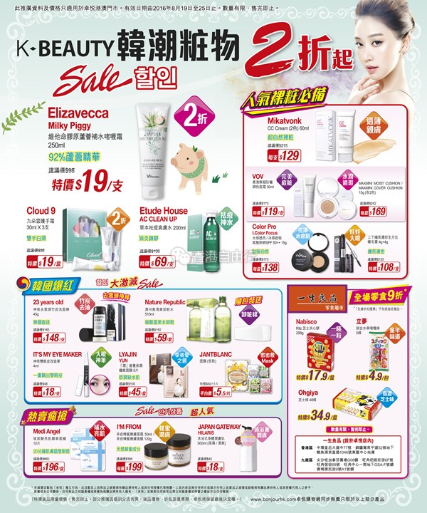 香港打折:韩潮妆物2折起!卓悦本周门市最新优惠(8月19至25日)
