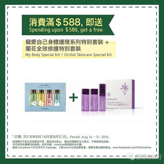 消费满HK$ 588,即送 宠爱自己身体护理系列特别套装+兰花全效修护特别套装