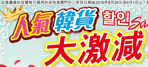 香港打折:人气韩货大激减!卓悦本周门市最新优惠(8月26至9月1日)