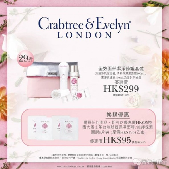永安百货独家优惠:上环总店Crabtree & Evelyn专柜开幕精彩礼遇~由即日起至2016年9月30日,永安百货顾客尊享多项开幕优惠,其中全效面部洁净修护套装更可享29折优惠,还有其他精彩礼遇。