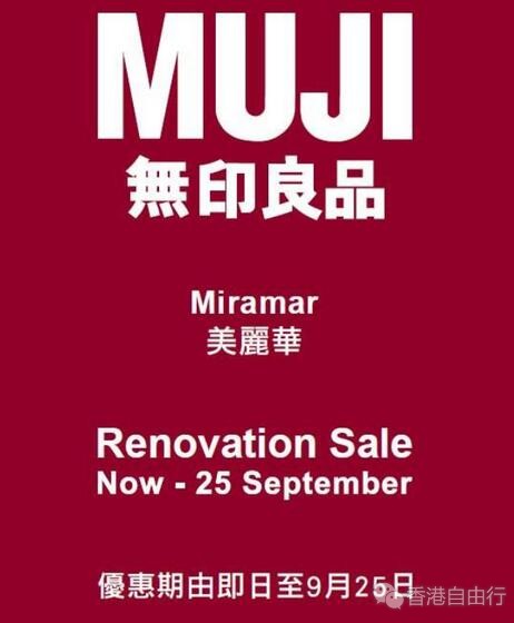 由2016年9月6日至25日期间,凡于无印良品美丽华店购买任何正价或推广价之服饰、寝室及家居布艺,即可享有8折优惠。优惠期有限,售完即止。