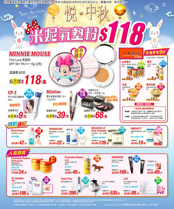 香港打折:米妮气垫粉$118!卓悦本周门市最新优惠(9月16至22日)
