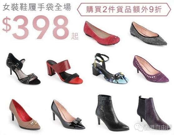 优惠:全场多款女装鞋履及手袋$398起,购买2件可享额外9折(只收现金)