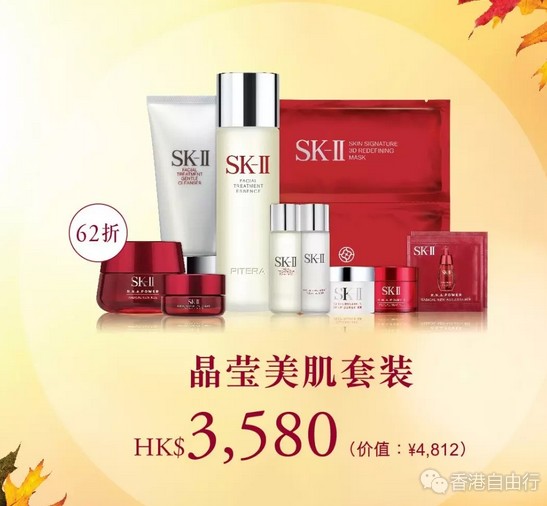 再配合使用环采钻白修护霜EX能有效提高肌肤的白滑程度,从肌肤深沉改善肤色不均的问题,美白效果棒棒哒。晶莹美肌套装只需HK$3,580,高达国内62折,不容错过喔。