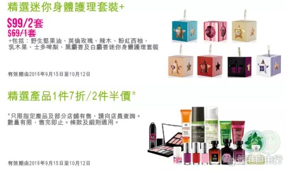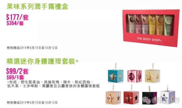 国庆就要到了,很多粉丝都要到香港去买买买,接下来为大家带来各种折扣,大家一起买买买!The body shop美体小铺最新门店优惠,有效期至10月12日,适用于全港美体小铺。