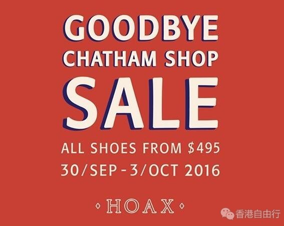 为答谢顾客多年来支持,HOAX 漆咸道店将于结业前举行近年最後一个大型Sale,为期4天(9月30日- 10月3日),届时将有大量西装礼服鞋款低至4折发售,同时亦有不少休闲款式割价发售,全部价钱由$495起,数量及尺码非常有限,随时售罄!