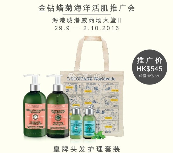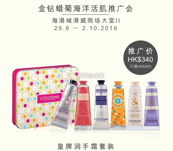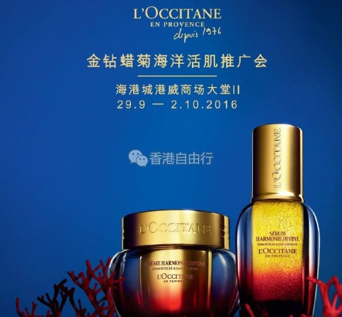 由即日起至10月2日,欧舒丹将会于海港城港威商场大堂II举行推广会。除了可以找到欧舒丹最新的金钻蜡菊海洋活肌系列的宝贝,各种适合秋季的护肤品套装、洗护套装也在这里!