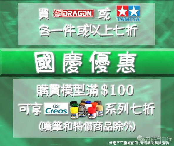 香港优惠:国庆节福利活动!HK最大的模型店环球模型低至7折