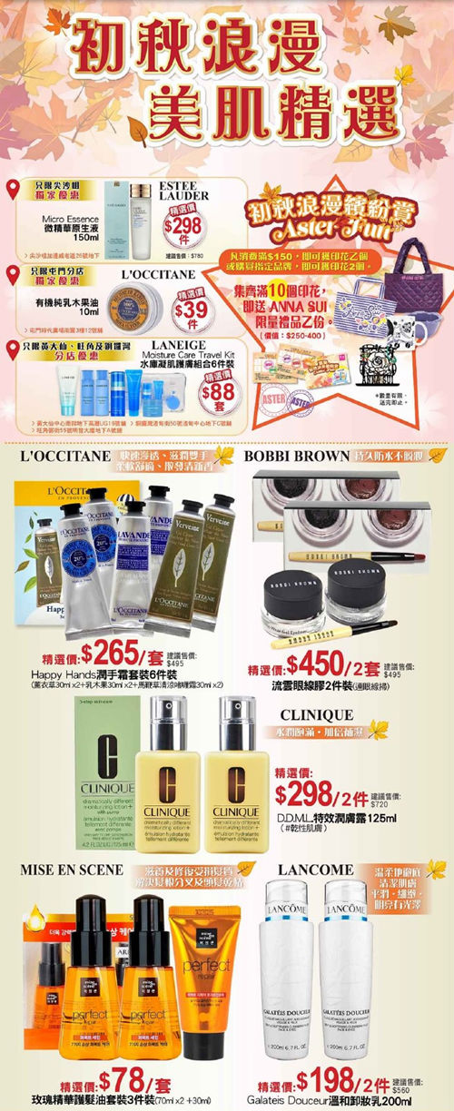 香港打折:初秋美肌精选!雅施最新店内优惠(10月7至20日)