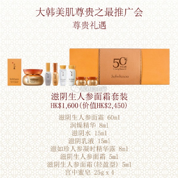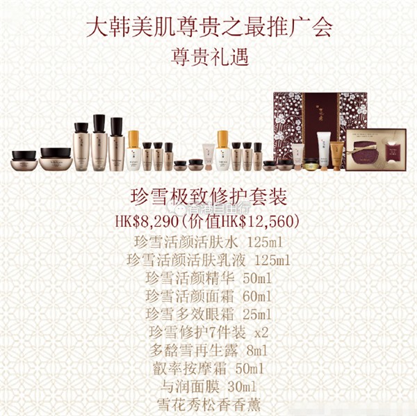 香港打折:太划算了!雪花秀Sulwhasoo 大韩美肌尊贵之最推广会优惠(10月10至16日)