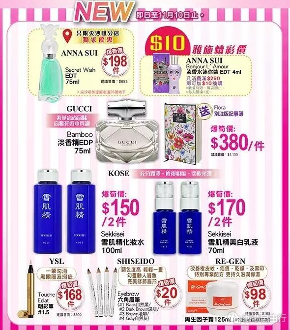 香港打折:雪肌精化妆水$150两件!雅施最新店内优惠(至11月10日)
