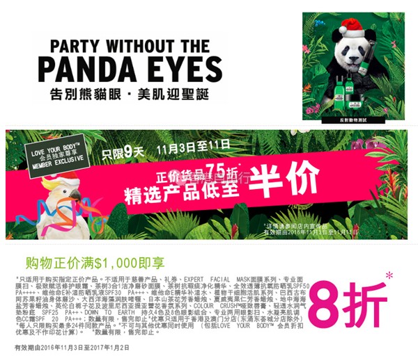 香港打折:圣诞套装精选!the body shop最新店内优惠(11月3至11日)