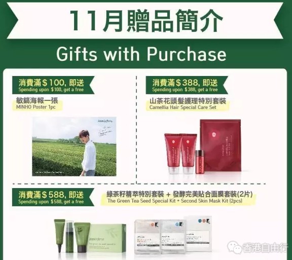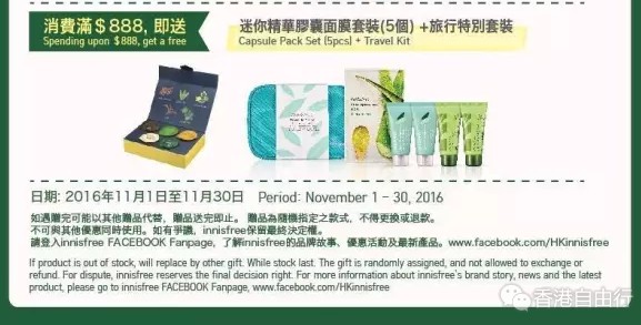 香港打折:innisfree悦诗风吟11月份购物特别优惠 买就送!