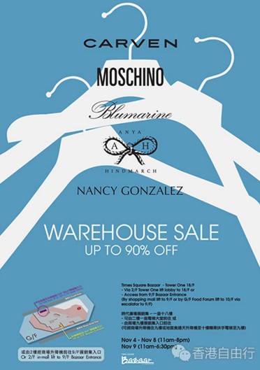 拥有MOSCHINO、CARVEN、ANYA HINDMARCH、BLUGIRL、BLUEMARINE和NANCY GONZALEZ等品牌的时装集团Bluebell group将于11月4至9日,于时代广场Bazaar展销集举行2016 Grand Sale,多款ANYA HINDMARCH手袋更将以低于1折$990出售,绝对不容错过!