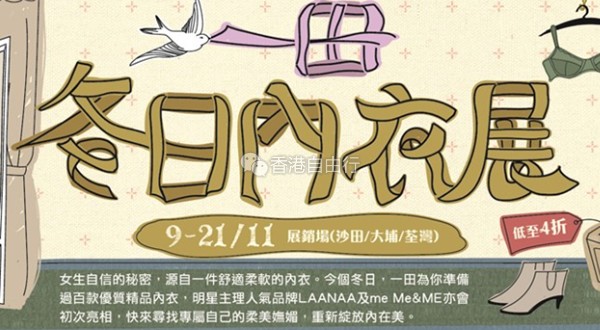 香港打折:一田百货冬日内衣展低至4折优惠(11月9日-21日)
