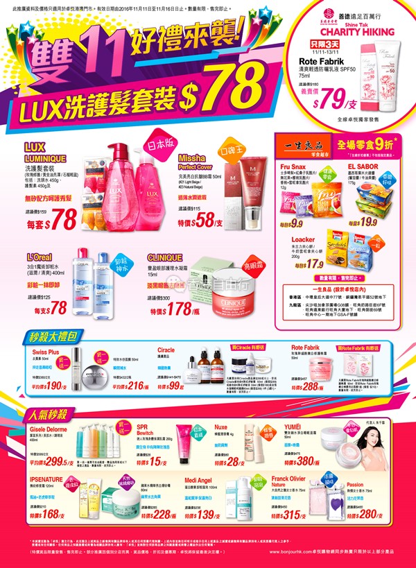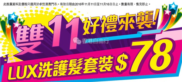 香港打折:双11好礼来袭 LUX洗护发套装$78!卓悦本周最新门市优惠(11月11至11月16日)
