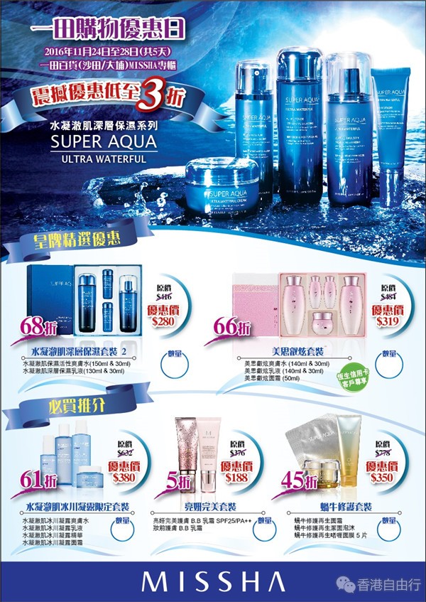 一田购物优惠日又来了,韩国领先护肤品牌Missha 谜尚率先推出重磅优惠套装,震撼优惠低至三折,是时间把你家中的护肤品来一次迎新换旧了。