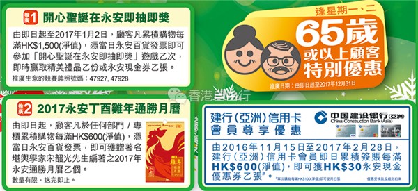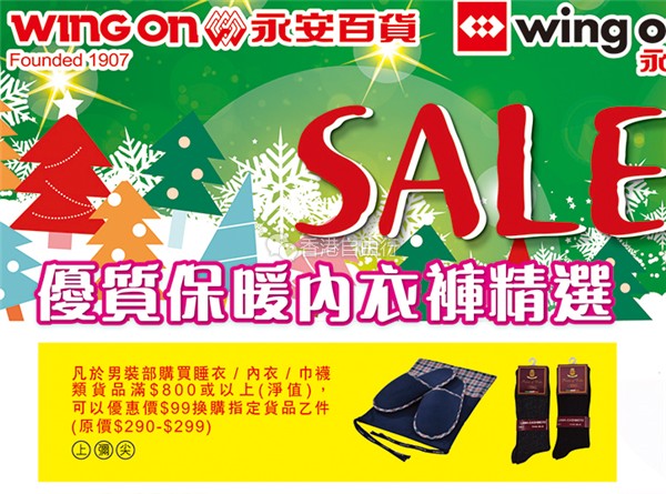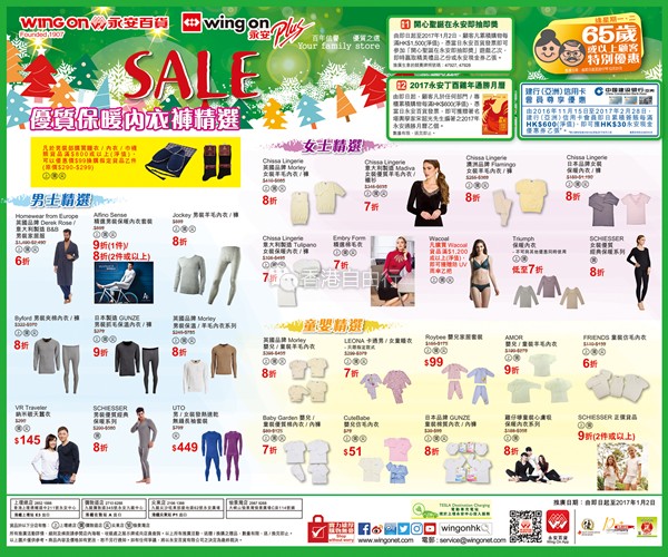 香港打折:永安百货优质保暖内衣裤精选优惠低至6折(至2017年1月2日)