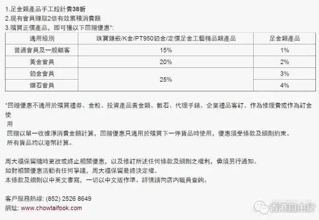 一年一度的香港周大福大减价优惠又开始了!足金类产品手工设计费38折!会员消费不但可以赚取2倍积分,还享有不同折扣优惠!钻石会员买足金类产品享96折优惠!好划算!需要买金的同学可以趁机入手啦~~