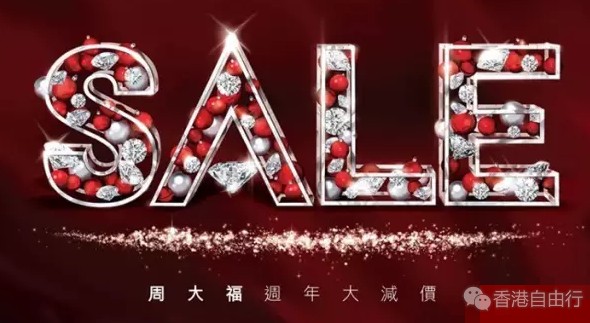 香港优惠:周大福2016年大减价今日开始!足金饰品工费38折 钻石会员买指定产品享75折!