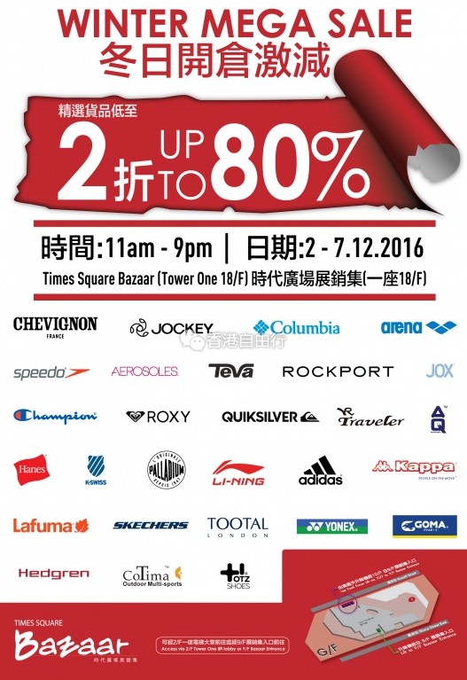 香港优惠:时代广场Winter Mega Sale冬日开仓激减低至2折(12月2至7日)