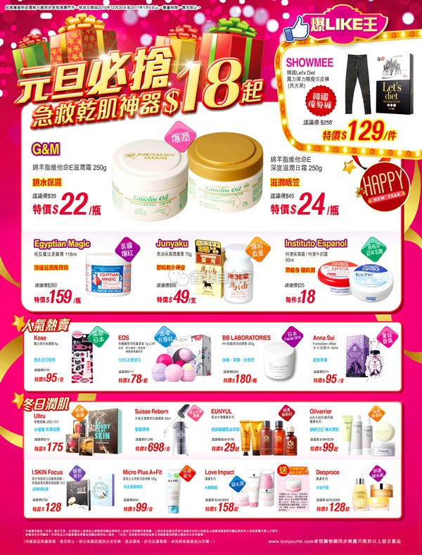 香港打折:圣旦必抢!卓悦BONJOUR最新全集高清推广优惠海报(16年12月30日-17年1月5日)