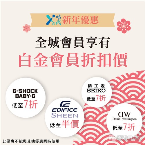 e时代与你一同迎接新一年,特此推出多个会员优惠,限时全城会员可享白金价,G-SHOCK/BABY-G低至7折!