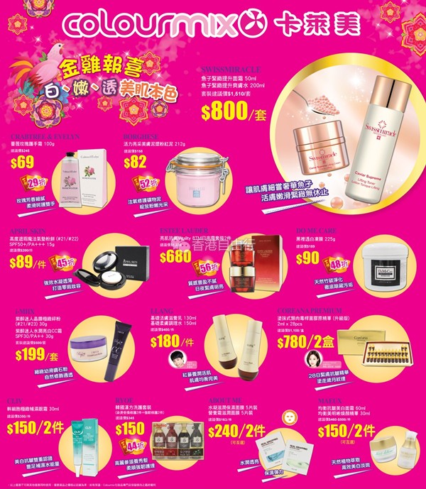 香港打折:金鸡报喜化妆品低至29折!Colourmix卡莱美最新店内优惠(即日起至1月19日止)