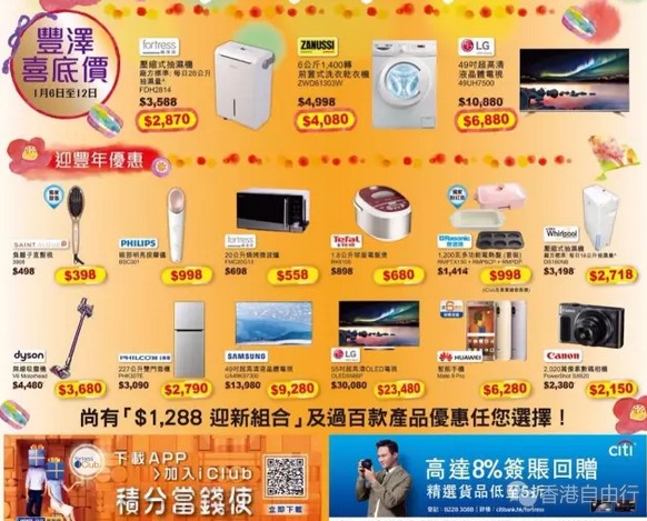 香港打折:多家电器行迎新年大优惠 丰泽、百老汇、卫讯都有了