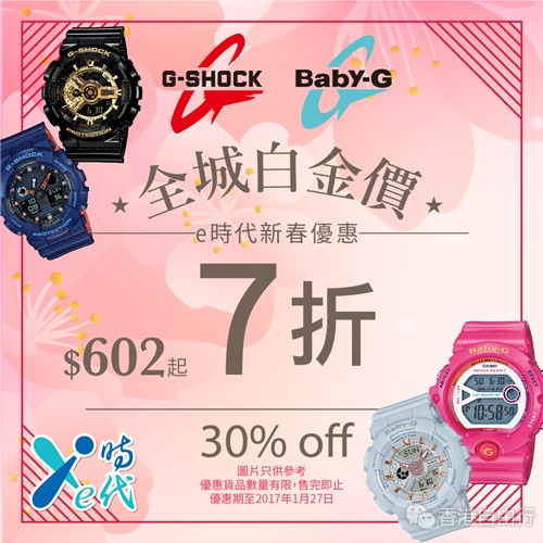 香港e时代新年限时优惠 G-SHOCK/BABY-G手表低至7折$602起